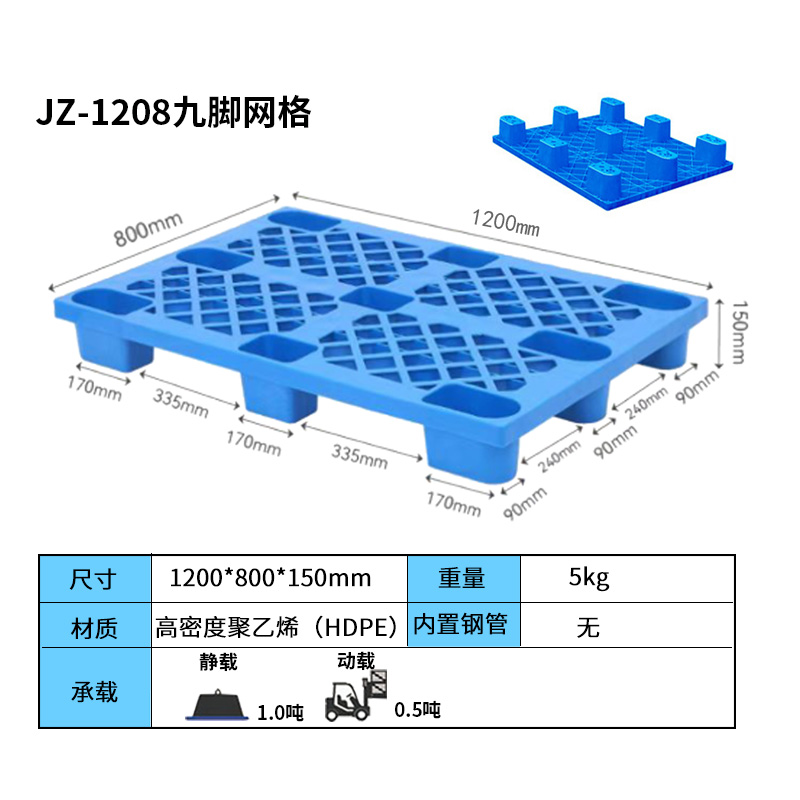 九腳網(wǎng)格塑料托盤(pán)的九腳網(wǎng)格托盤(pán)其底部是有‘九個(gè)腿’組成的,表面為‘網(wǎng)格’狀,行業(yè)為方便稱其為九腳網(wǎng)格托盤(pán),九腳網(wǎng)格托盤(pán)大多型號(hào)的都為輕型的塑料托盤(pán),不易用于上貨架或者較重貨物的周轉(zhuǎn)使用,大多情況下九腳網(wǎng)格塑料托盤(pán)都是用來(lái)倉(cāng)庫(kù)貨物墊倉(cāng)板防潮使用,對(duì)于輕型貨物的周轉(zhuǎn)也可