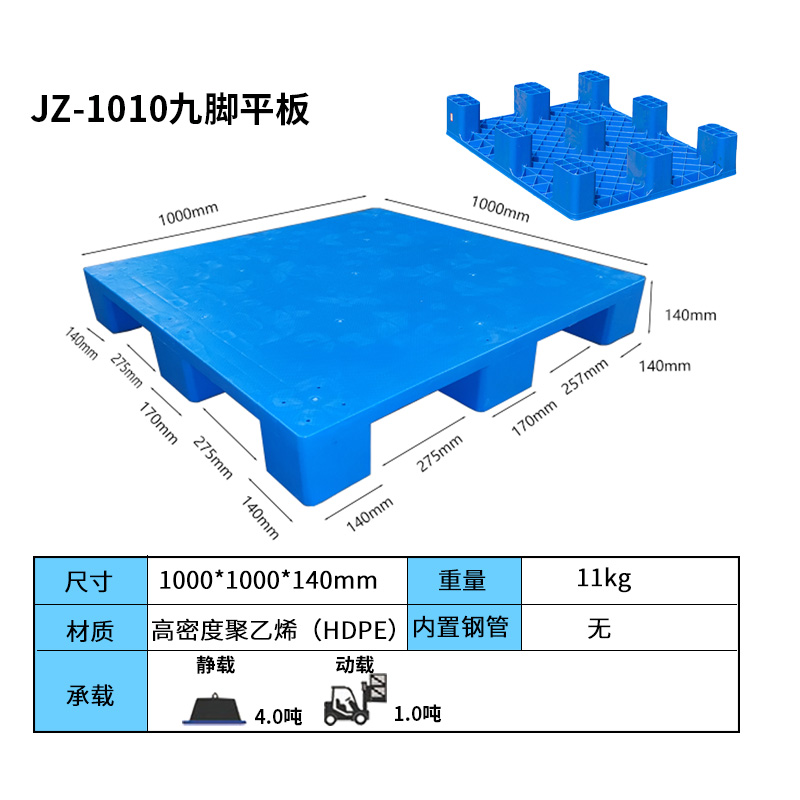 九腳平板塑料托盤底部為“九腳形”設(shè)計的塑料搬運制品,其表面為平面,廣泛應(yīng)用于紡織廠、食品廠、醫(yī)藥廠等企業(yè)。這種托盤的設(shè)計特點包括輕質(zhì)、平穩(wěn)、美觀,無釘無刺,無毒無味,耐酸堿,不腐爛,不易被細菌繁殖,易清洗消毒,不助燃,無靜電,無火花,防暴,防滑溜,回收價值高。與鋼托盤、木托盤相比,九腳平板塑料托盤具有更好的環(huán)保性和安全性,能夠提升企業(yè)形象,提高物流效率。此外,九腳平板塑料托盤因其表面為平板狀,不易積累灰塵,方便清洗;受力均勻,對貨物有很好的保護作用;平面上均留有排氣小孔,具有良好的透氣性和防潮效果。這種托盤主要應(yīng)用于倉庫輕型貨物墊倉板、叉車周轉(zhuǎn)較輕貨物使用,不適合于上貨架或者轉(zhuǎn)載大重量的貨物?