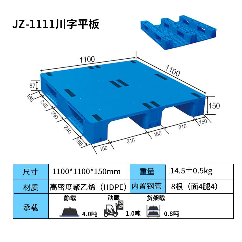 1100*1100*150mm川字平板塑料托盤