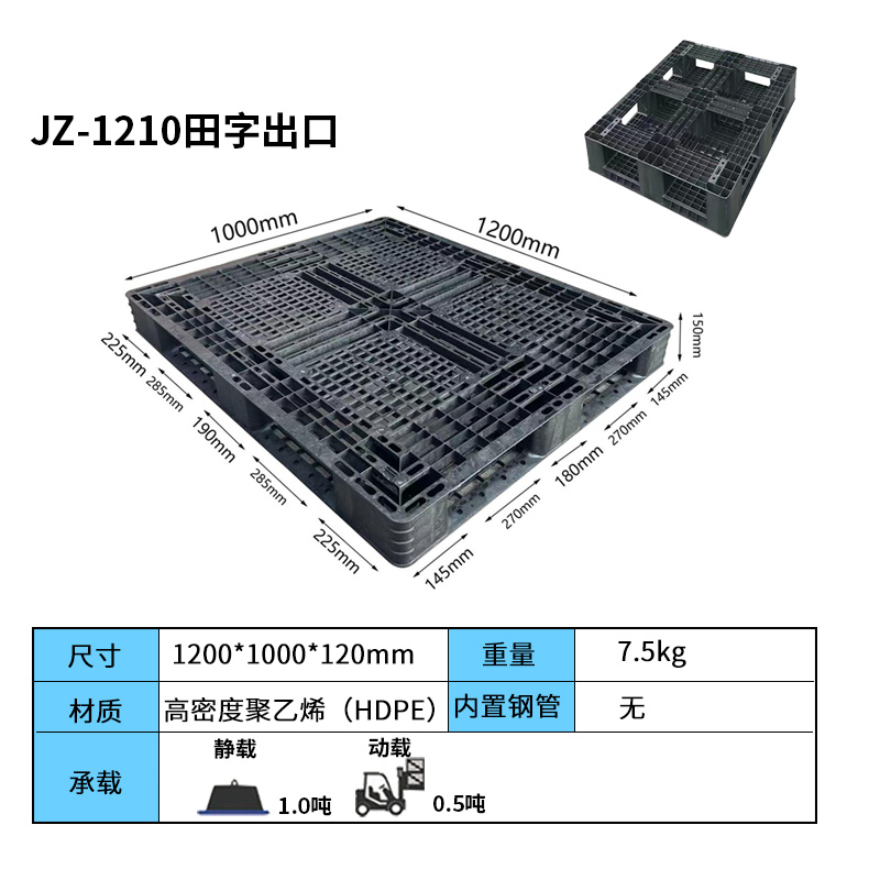 田字設(shè)計(jì),雙層加強(qiáng)受力,增加托盤受力強(qiáng)度,使受力更加均勻,結(jié)構(gòu)牢固,不易變形。出口使用,尺寸完全貼合集裝箱,免熏蒸,免檢驗(yàn)完美無障礙平地堆碼,疊放易于整理存放,也可節(jié)約存儲空間,符合空間資源合理配置要求??伤南蜻M(jìn)叉,操作方便,多面進(jìn)叉可防止